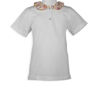 Magia di Nonna-Polo in cotone piquet con manica corta e colletto tondo in tessuto (4 Anni - BIANCO FIORI MALVA GIALLO)