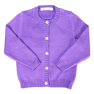 Cárdigan de algodón con cuello coreano con perfiles de canalé y botones a la izquierda - Nonna Magali (9 Mesi - VIOLA)